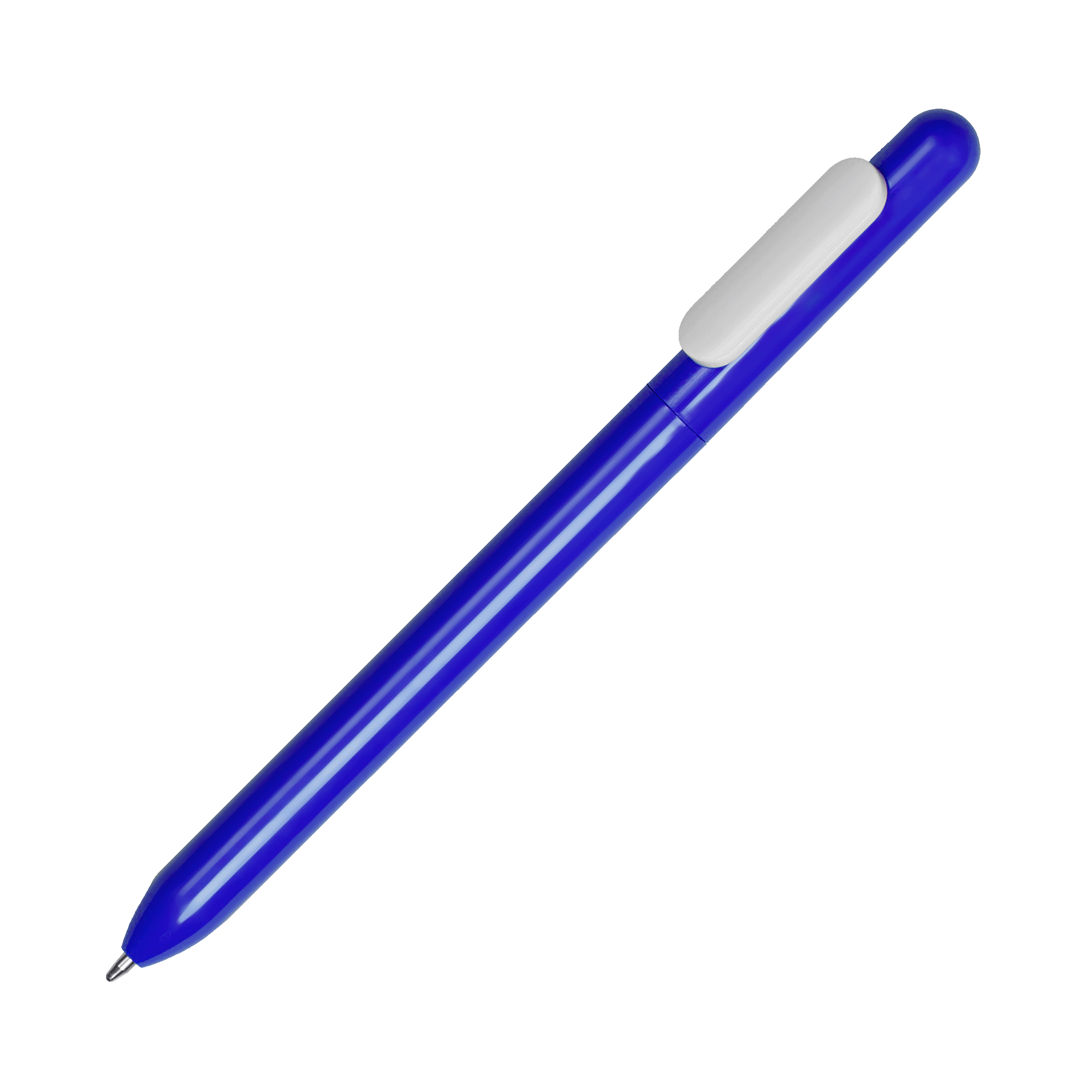 Ручка из глянцевого пластика с белым клипом.