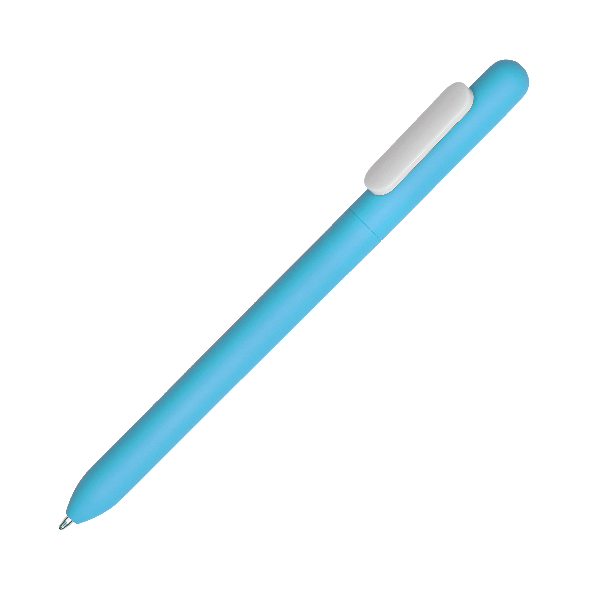 Ручка из пластика с покрытием софт-тач и белым глянцевым клипом.