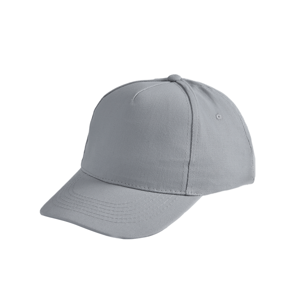 Модель бейсболки с 5-ю клиньями без лобового шва из плотного чесаного хлопка.