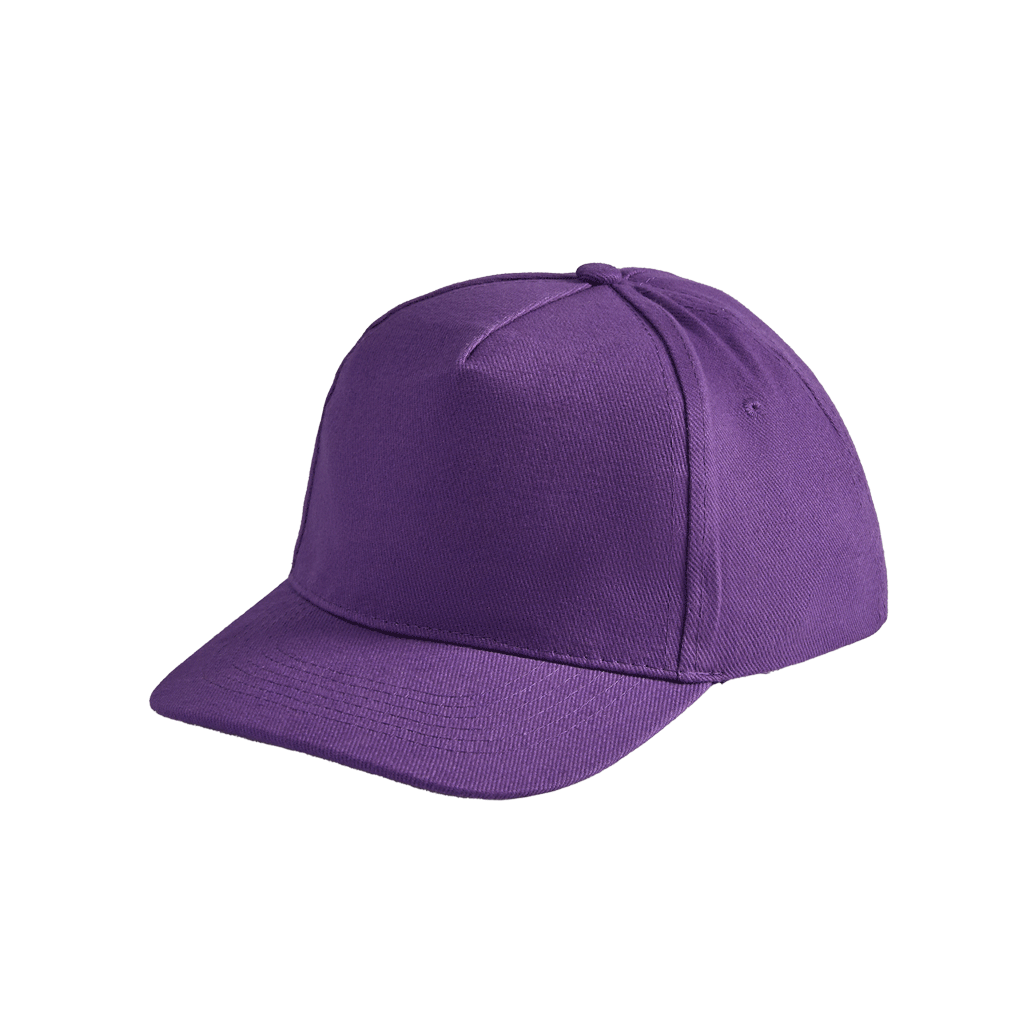 Модель бейсболки с 5-ю клиньями без лобового шва из плотного чесаного хлопка.