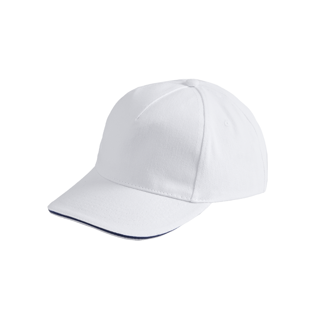 Модель бейсболки с 5-ю клиньями без лобового шва из плотного чесаного хлопка.