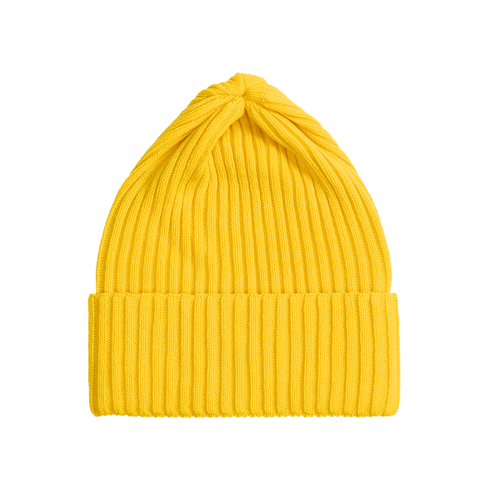 Однослойная шапка фактурной вязки с двойным отворотом.