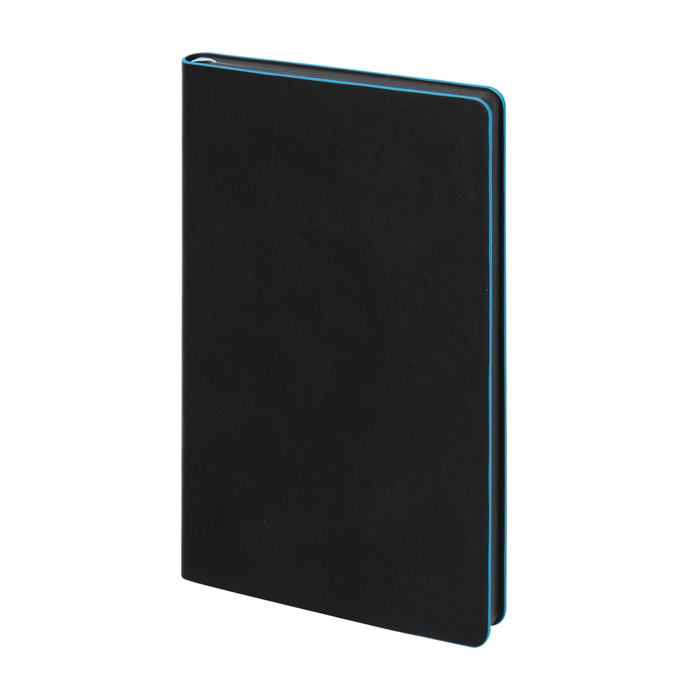 Ежедневник с гибкой обложкой, выполнен из материала Waltz, черный АА, дополнен цветными срезом обложки и ляссе.