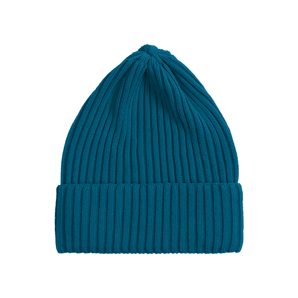 Однослойная шапка фактурной вязки с двойным отворотом.