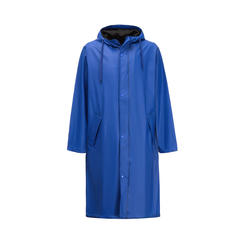 Плащ-дождевик с капюшоном из полиэстера с полиуретановым непромокаемым покрытием.