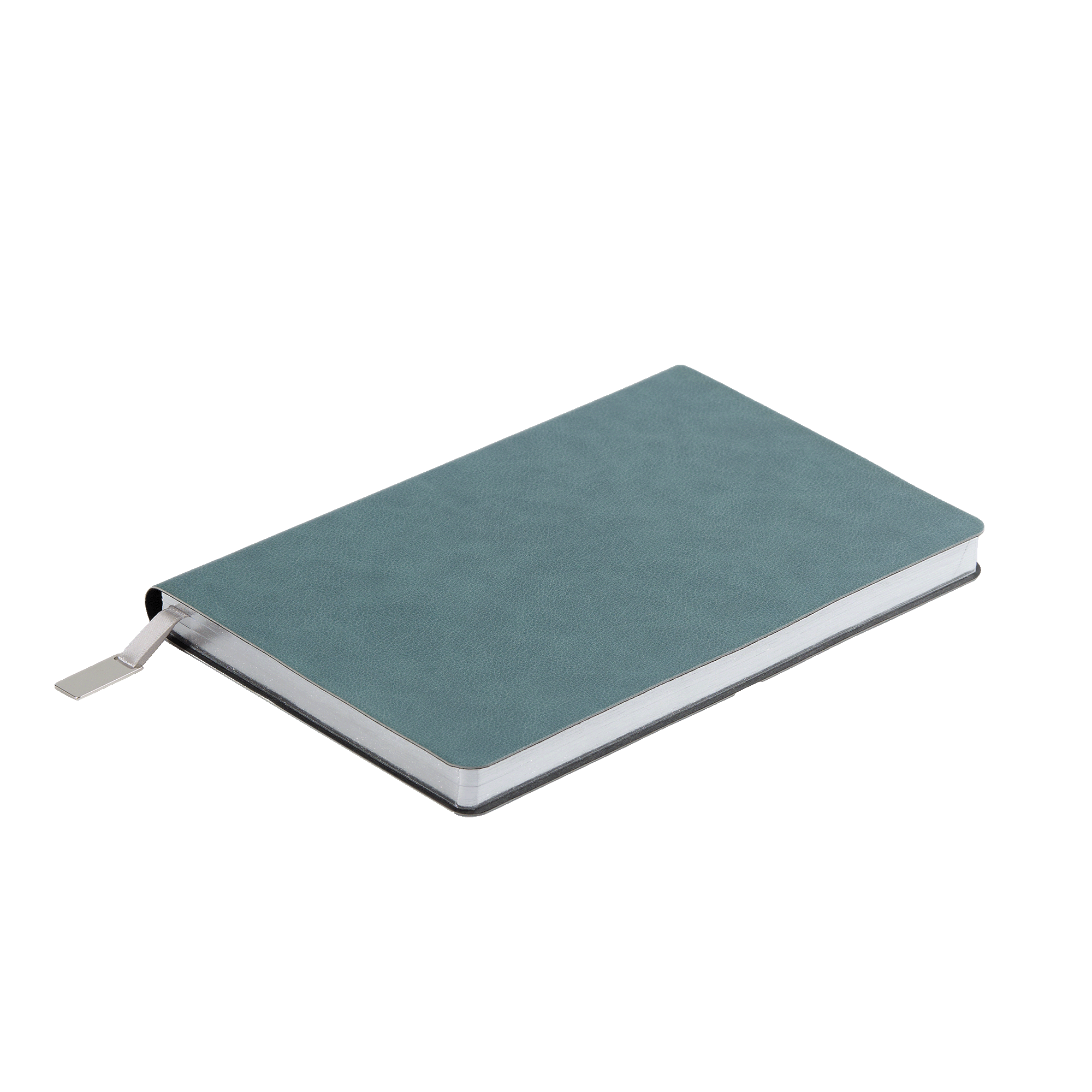 Ежедневник с гибкой обложкой, выполнен из материала Petrus, голубой JJ, дополнен серым ляссе с металлическим шильдиком.