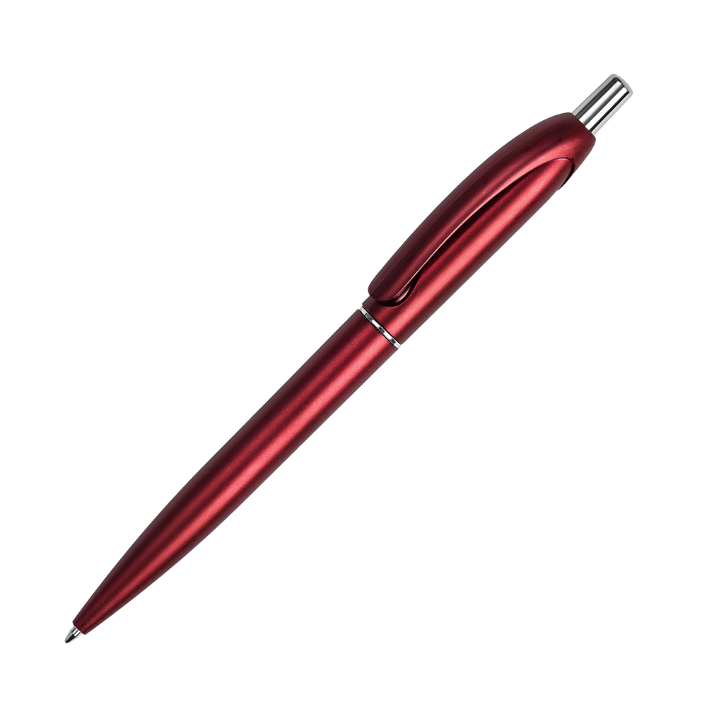 Шариковая пластиковая ручка в корпусе с эффектом «металлик» и серебристыми деталями. Приятная округлая форма клипа добавляет ручке плавности и объема.