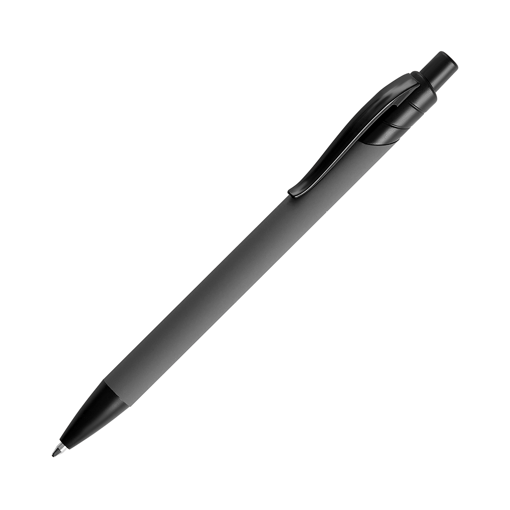 Металлическая шариковая ручка с покрытием софт-тач и черными матовыми деталями.