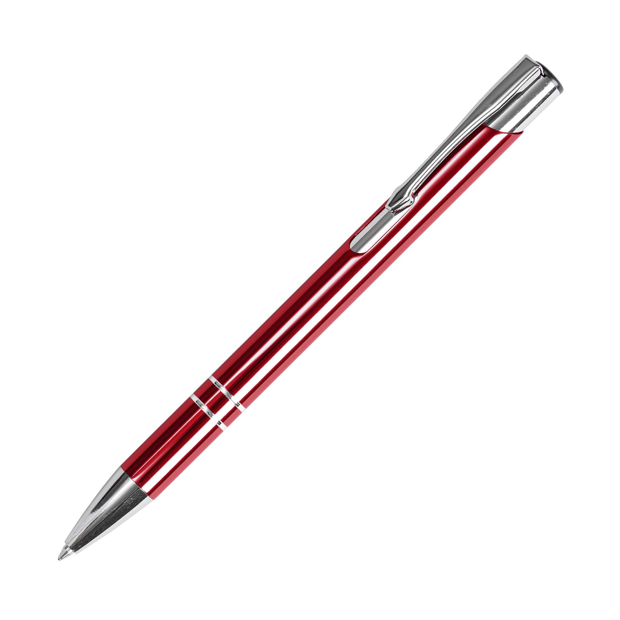 Яркая шариковая ручка с глянцевым цветным корпусом и хромированными деталями.