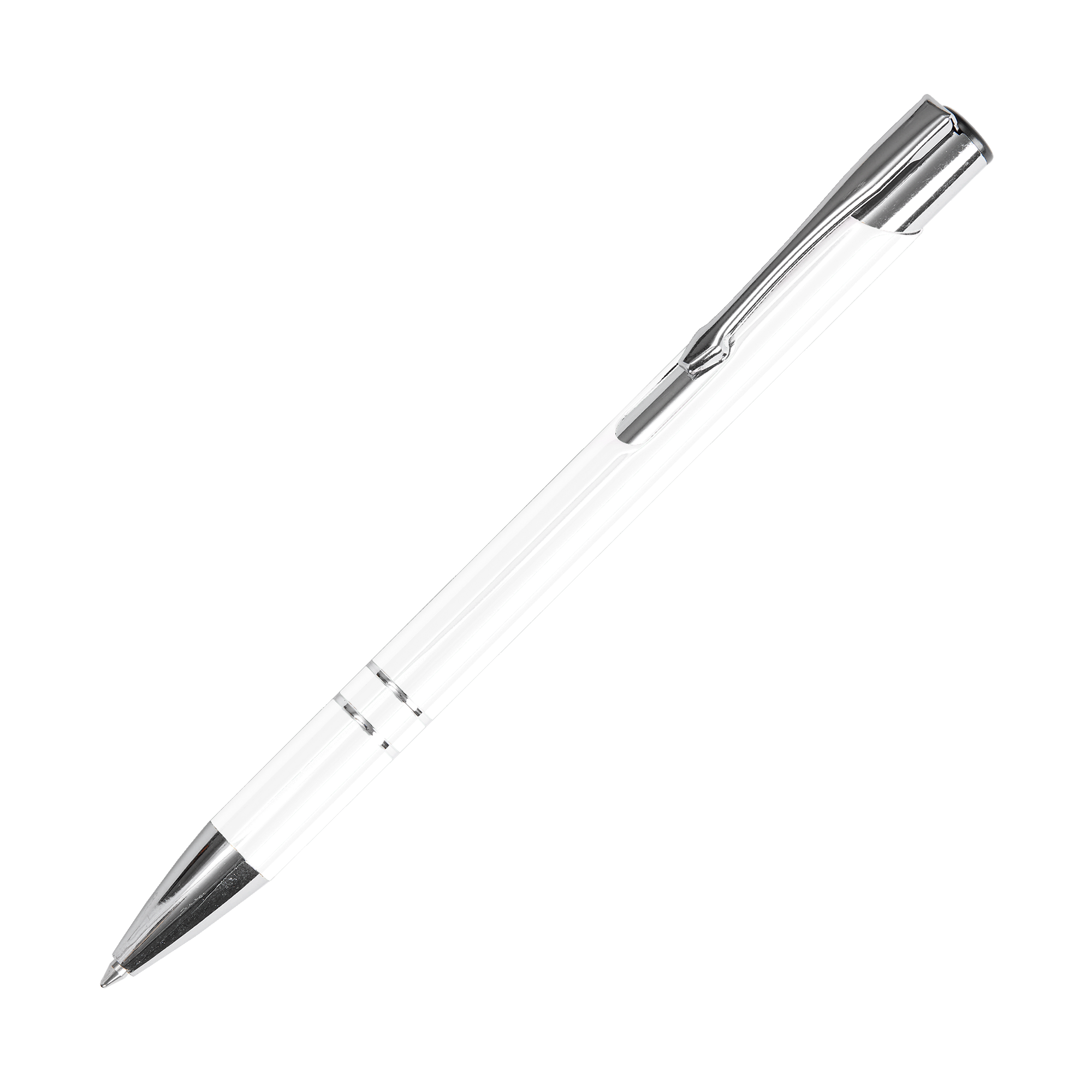Яркая шариковая ручка с глянцевым цветным корпусом и хромированными деталями.