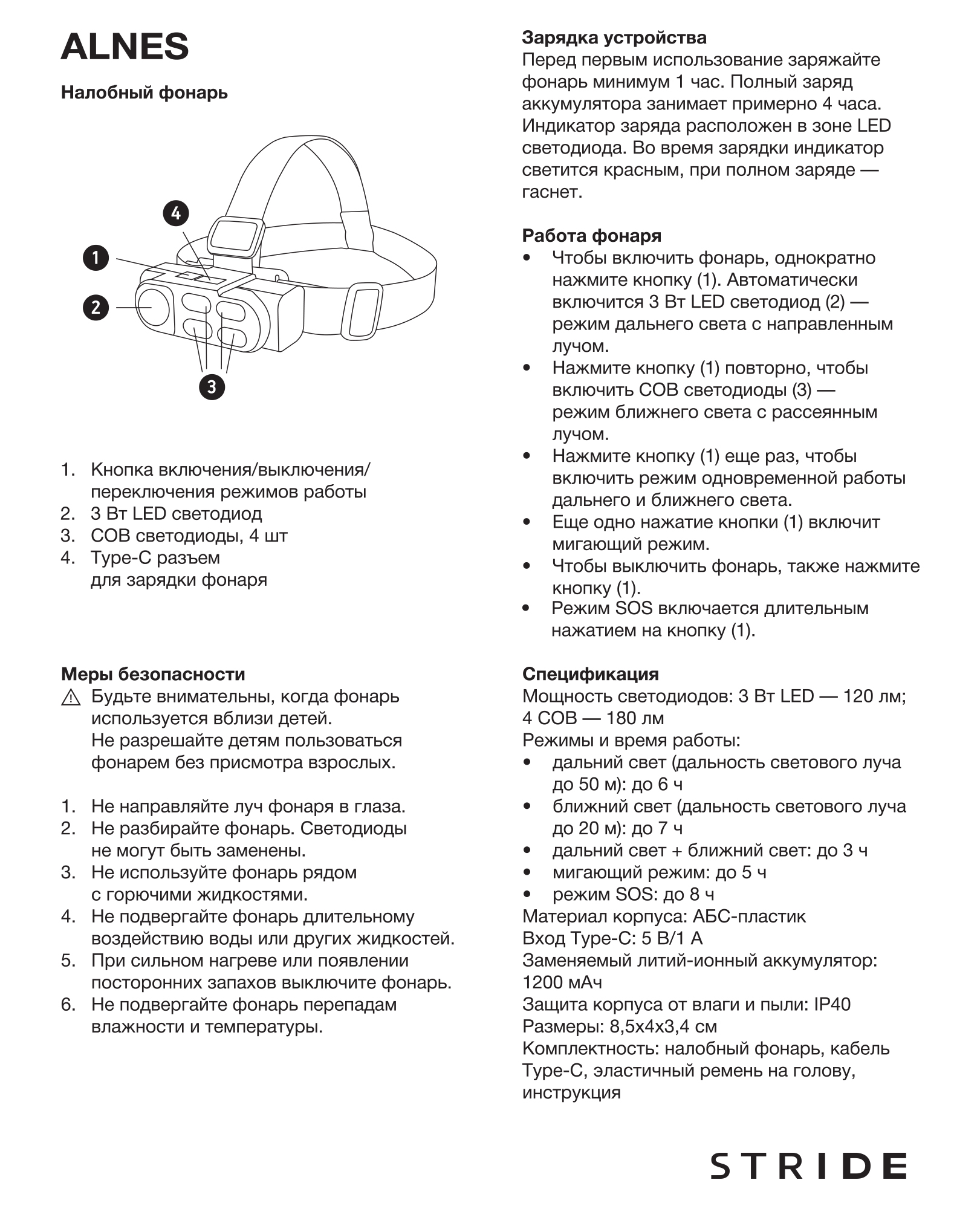 Несколько режимов освещения позволяют с комфортом использовать фонарик Alnes в походе, на даче и дома. Крепление фонарика на голову позволяет освободить руки при передвижении с большим объемом снаряжения или для выполнения различных бытовых работ — это удобно и безопасно.