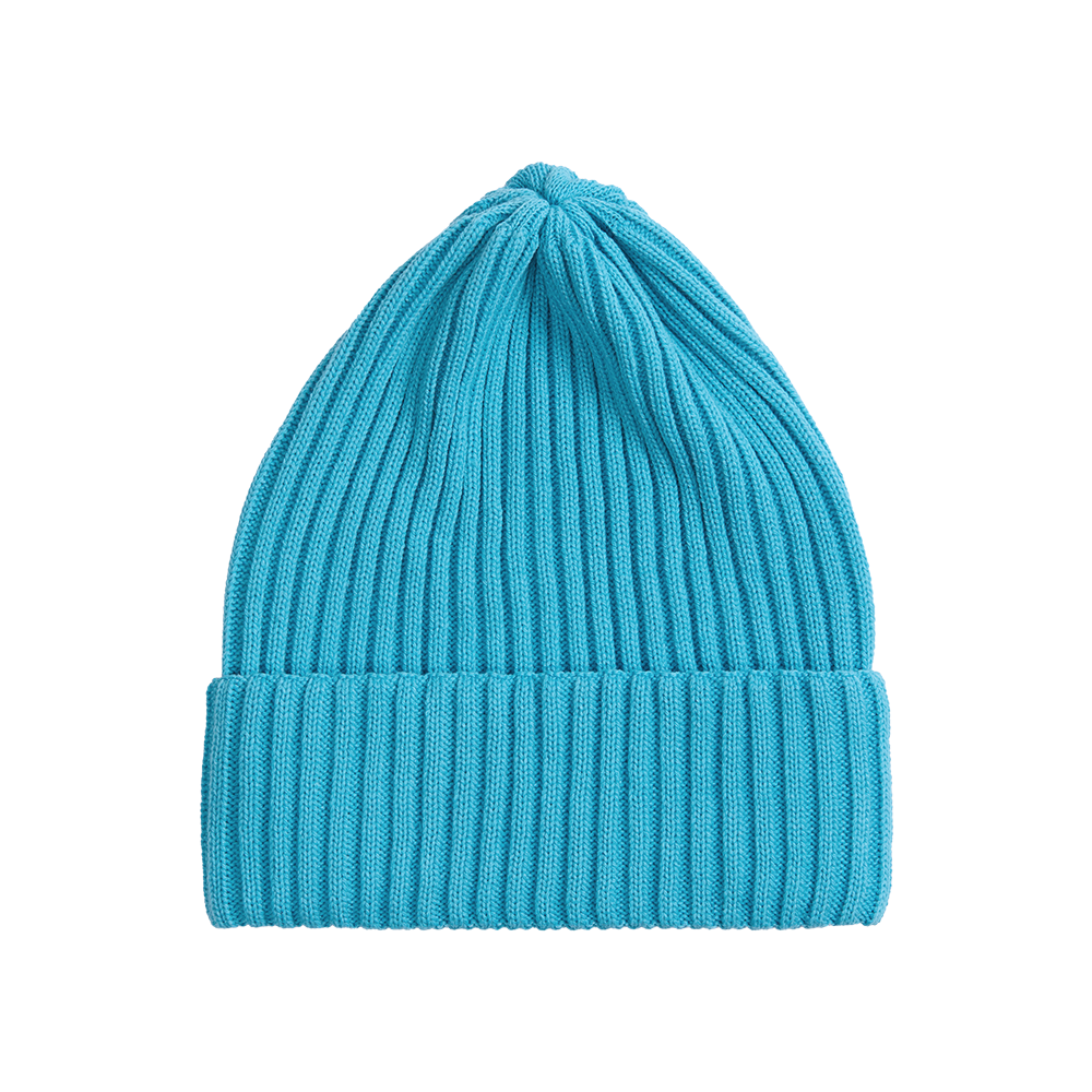 Однослойная шапка фактурной вязки с двойным отворотом.