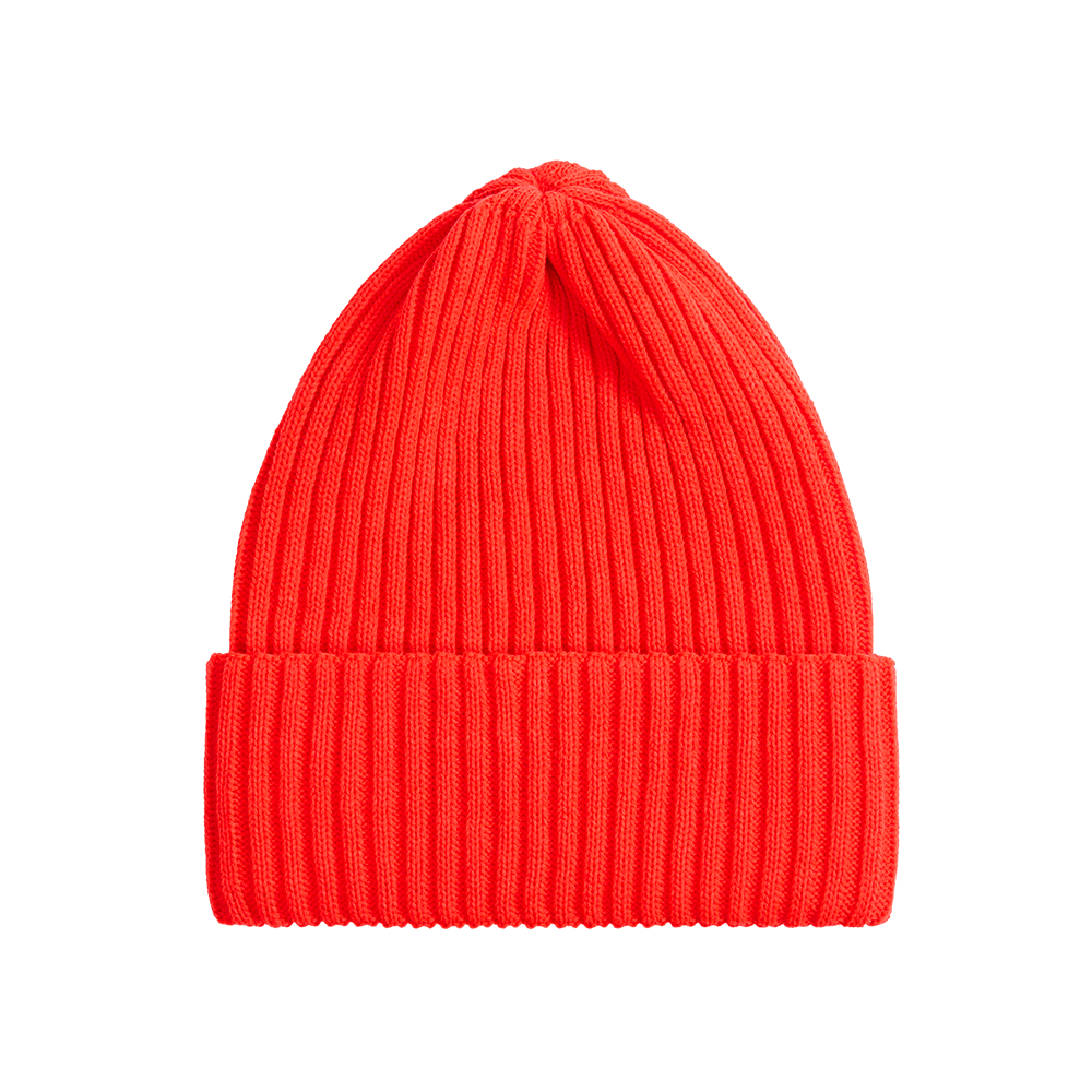 Однослойная шапка фактурной вязки с двойным отворотом.