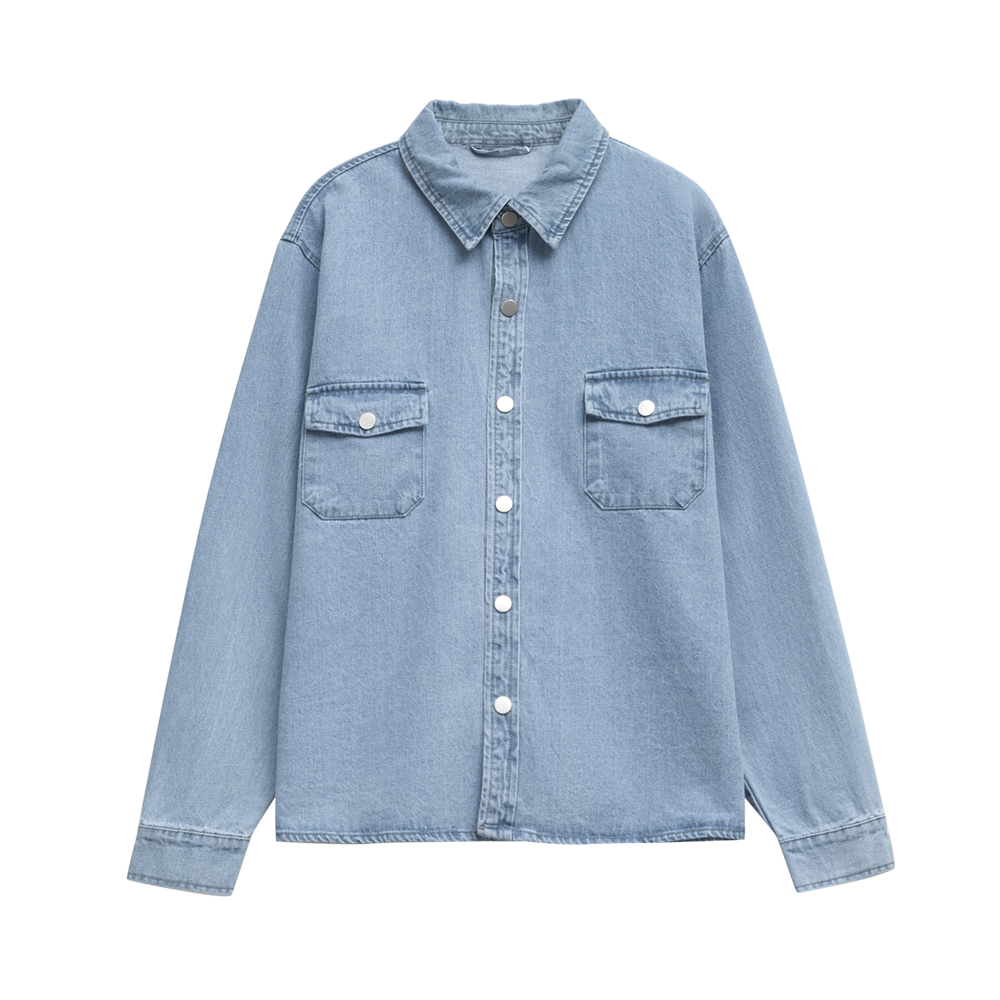 Джинсовая куртка-рубашка унисекс на кнопках прямого силуэта.