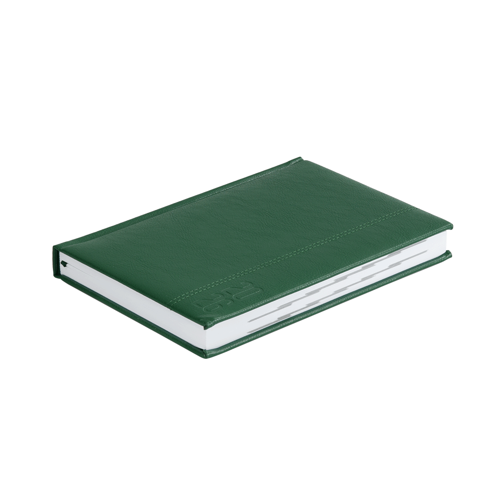 Ежедневник с твердой обложкой с поролоном из искусственной кожи, дополнен декоративной строчкой, капталом и ляссе в цвет ежедневника.
