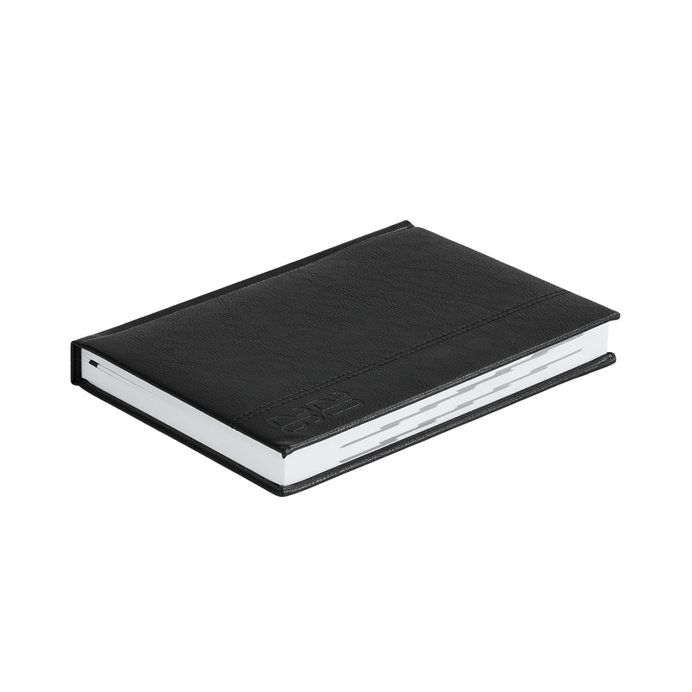 Ежедневник с твердой обложкой с поролоном из искусственной кожи, дополнен декоративной строчкой, капталом и ляссе в цвет ежедневника.