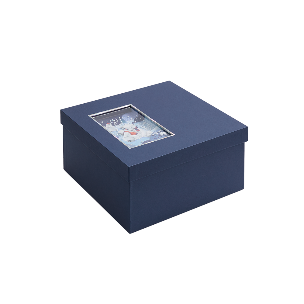 Элегантная коробка из переплетного картона The Blue Bear станет настоящим украшением зимних праздников. Ее главная изюминка — очаровательное окошко с 3D-иллюстрацией, которое словно приглашает в мир новогодних чудес.