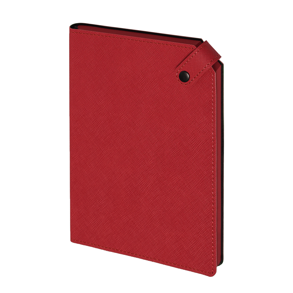 Ежедневник с гибкой обложкой, выполнен из материала Espresso, дополнен ляссе черного цвета и хлястиком на кнопке.
