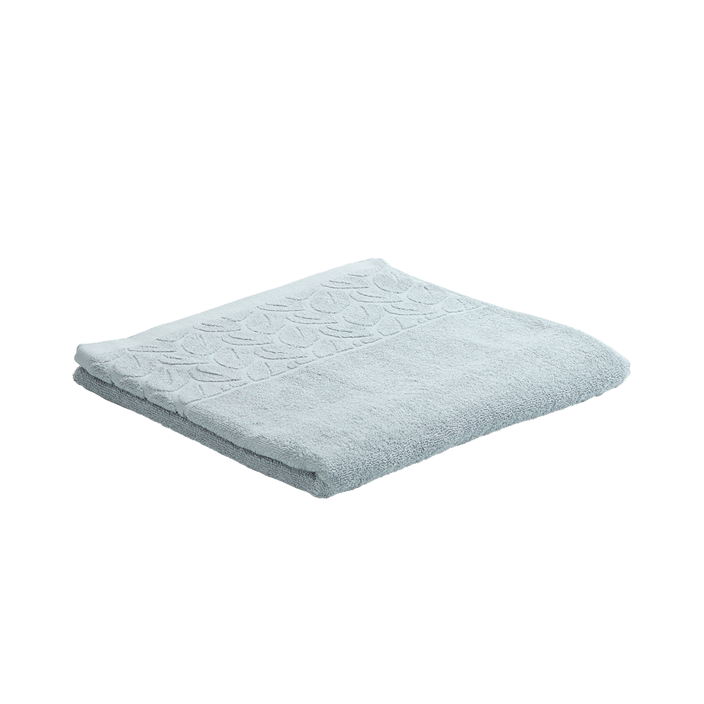 Светлые оттенки в сочетании с широким бордюром с рельефным растительным узором придают полотенцу элегантный и свежий вид.
