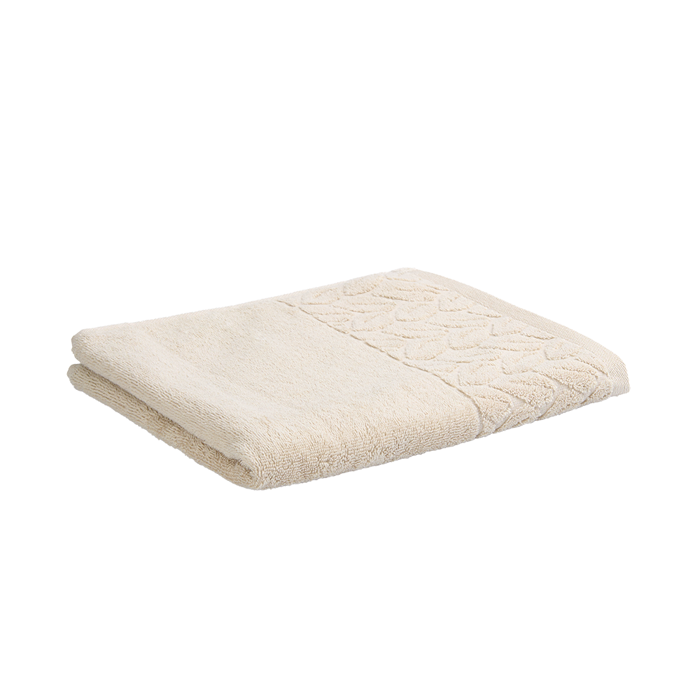 Светлые оттенки в сочетании с широким бордюром с рельефным растительным узором делают полотенце не только функциональным, но и эстетически привлекательным и элегантным.