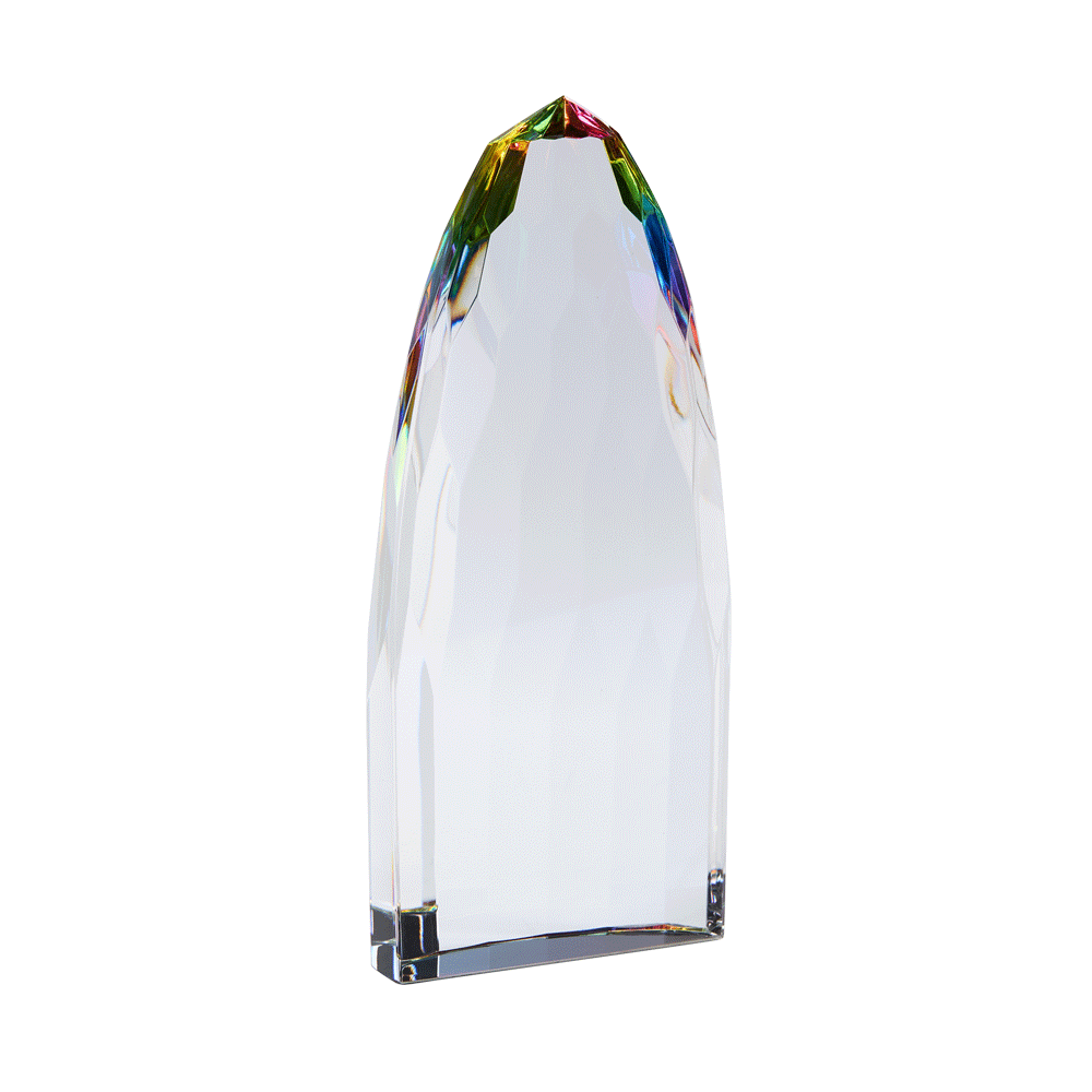Объемная высокая стела Gleampeak олицетворяет стремление к победам и блестящий успех, свет от которого будет еще долго разливаться вокруг. Необычная форма с легкой огранкой и плавно скошенными краями усиливает визуальный эффект и создает притягательные отблески по всей стеле — она словно светится изнутри! Такое разноцветное свечение — яркий символ творческого подхода, который окрасит в разные оттенки любое дело.