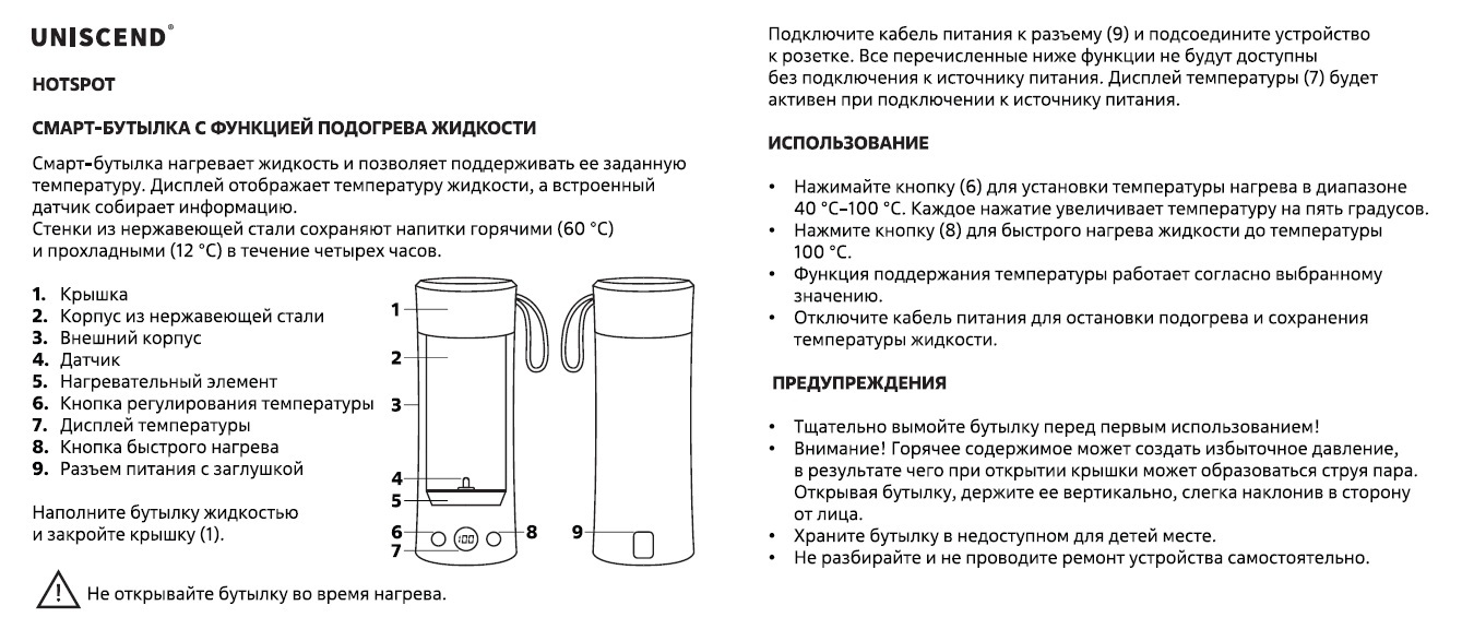Смарт-бутылка Hotspot позволяет не просто сохранять напиток горячим, но и нагревать жидкость от 40 до 100 °C. Нужную температуру можно установить вручную или же вскипятить до 100 °C одним нажатием.