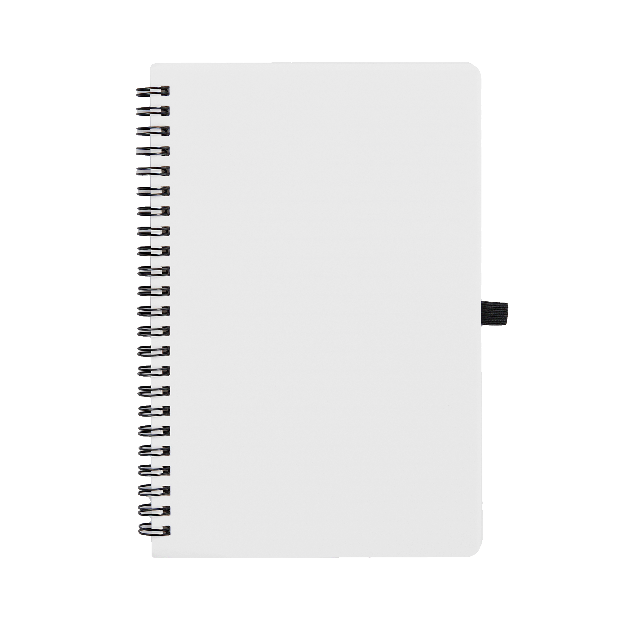 Блокнот из каменной бумаги на пружине с резинкой для ручки.