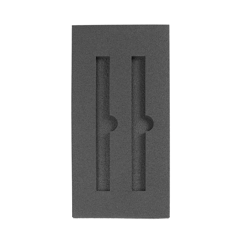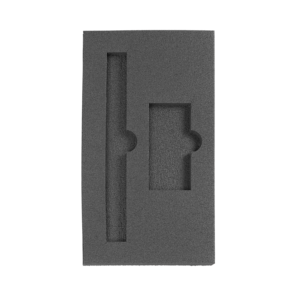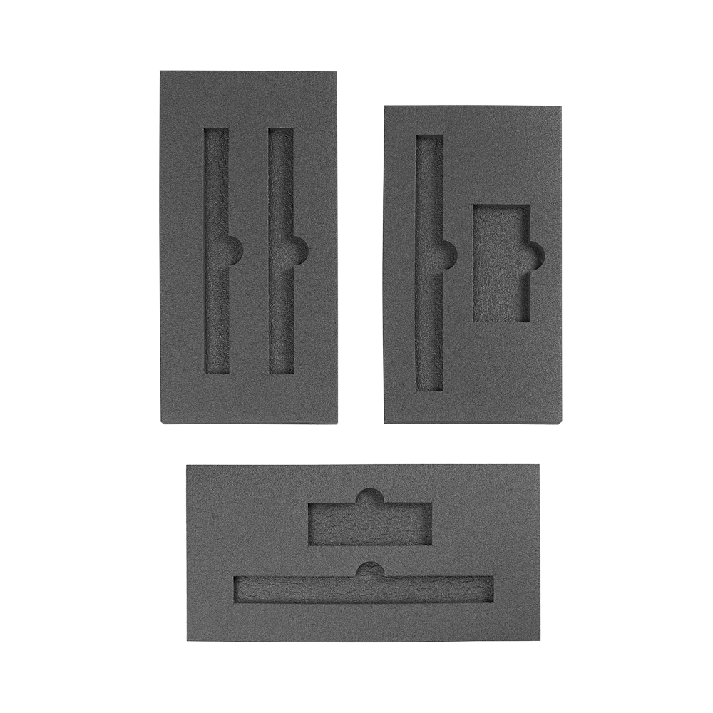 Ложемент, изготовленный из материала Izolon 500 черного цвета, представляет собой многослойную конструкцию, состоящую из нижнего слоя толщиной 5 мм и верхнего слоя толщиной 10 мм. В соответствии с утвержденным макетом, проемы для размещения предметов могут быть спроектированы как в одном, так и в обоих слоях.