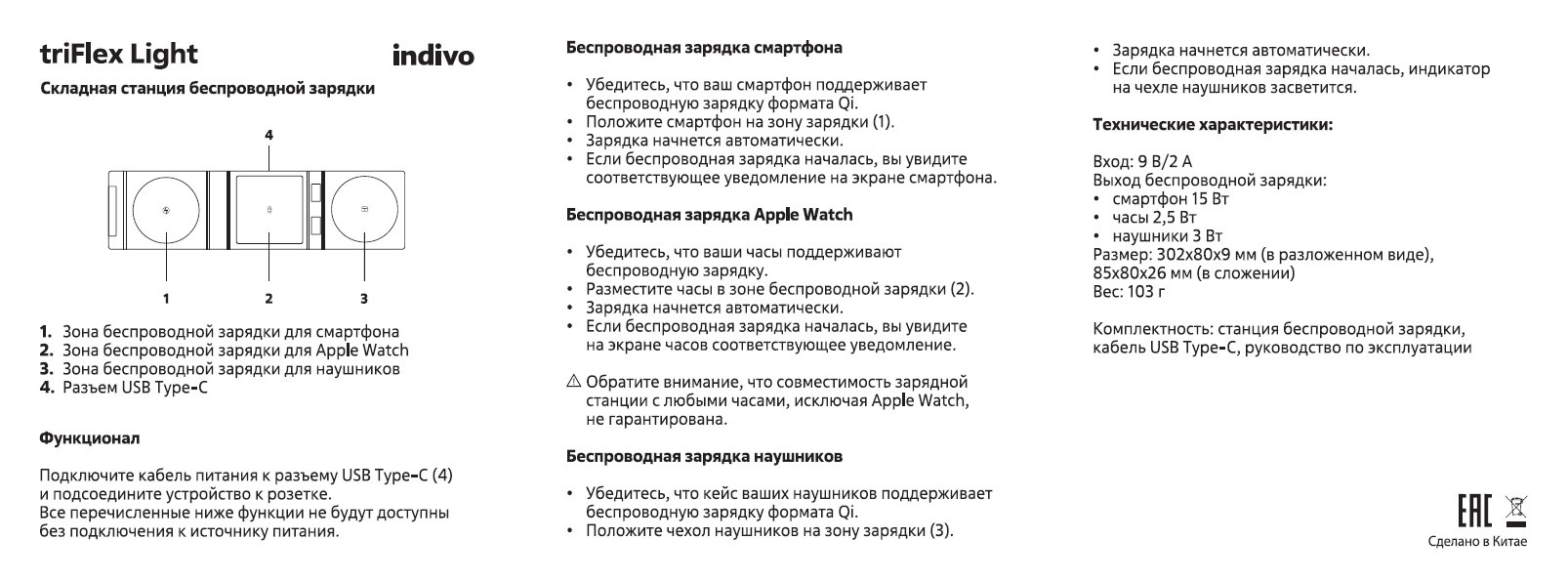 triFlex Light — компактное устройство беспроводной зарядки для самых мобильных и современных пользователей. Станцию легко свернуть в аккуратный бокс: удобно использовать не только в офисе, но и находясь в дороге.