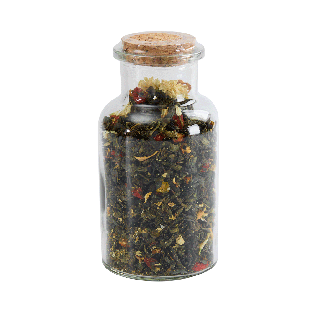 Ягоды годжи и сублимированная клубника добавляют витаминную свежесть, а цветки хризантемы и апельсинового дерева дарят тонкий цветочный аромат.