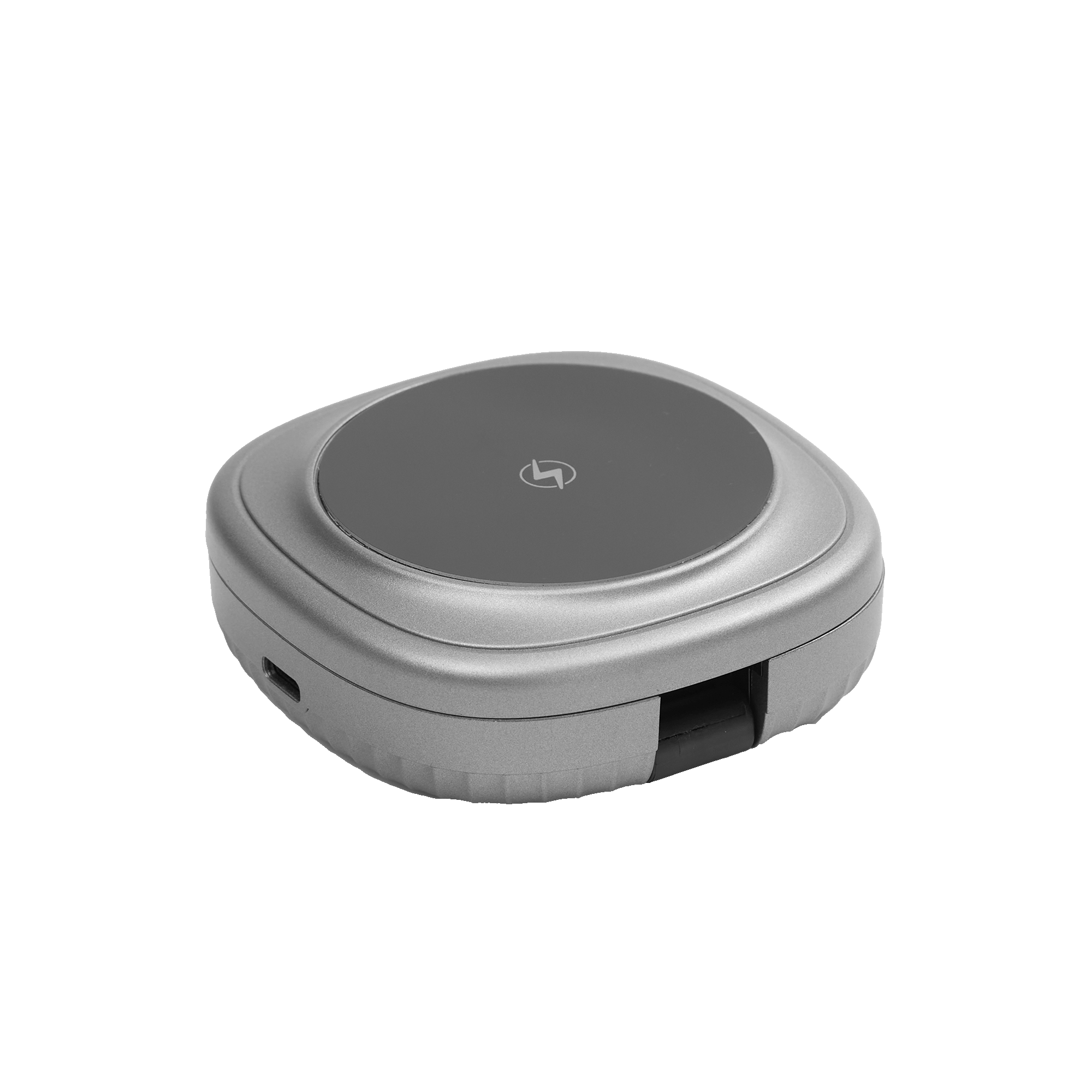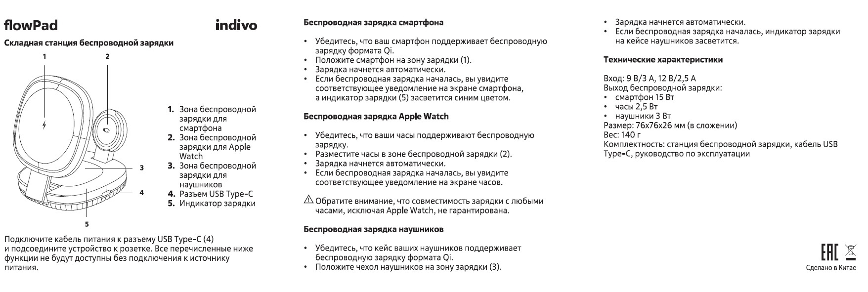 В сложенном состоянии площадки для зарядки смартфона и наушников расположены друг над другом, а зона зарядки умных часов убирается в специальный паз, поэтому станцию легко сложить в аккуратный бокс.