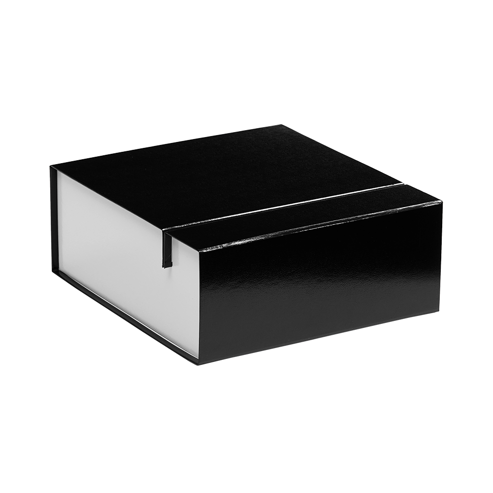 Плотная коробка из переплетного картона толщиной 2 мм с практичной конструкцией на двух створках. Складная система с уже нанесенным двусторонним скотчем позволяет быстро собрать коробку без дополнительных инструментов. Лайнер с полуглянцевым ламинированием устойчив к повреждениям и надолго сохраняет безупречный вид.