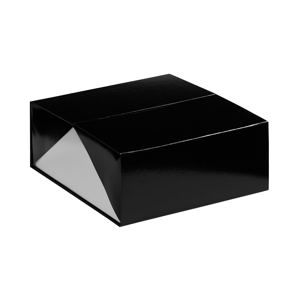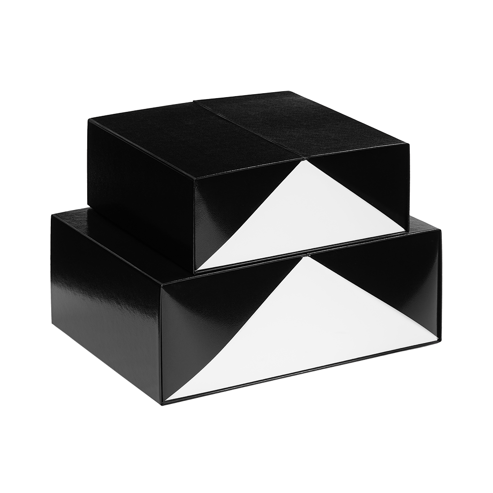 Коробка из переплетного картона 2 мм с оригинальной конструкцией: две симметричные створки открываются, создавая эффектную презентацию содержимого. Складная система на предустановленный двусторонний скотч делает сборку коробки быстрой и интуитивно понятной.