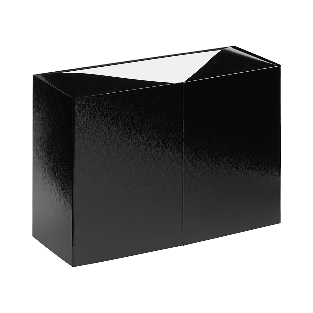 Коробка из переплетного картона 2 мм с оригинальной конструкцией: две симметричные створки открываются, создавая эффектную презентацию содержимого. Складная система на предустановленный двусторонний скотч делает сборку коробки быстрой и интуитивно понятной.