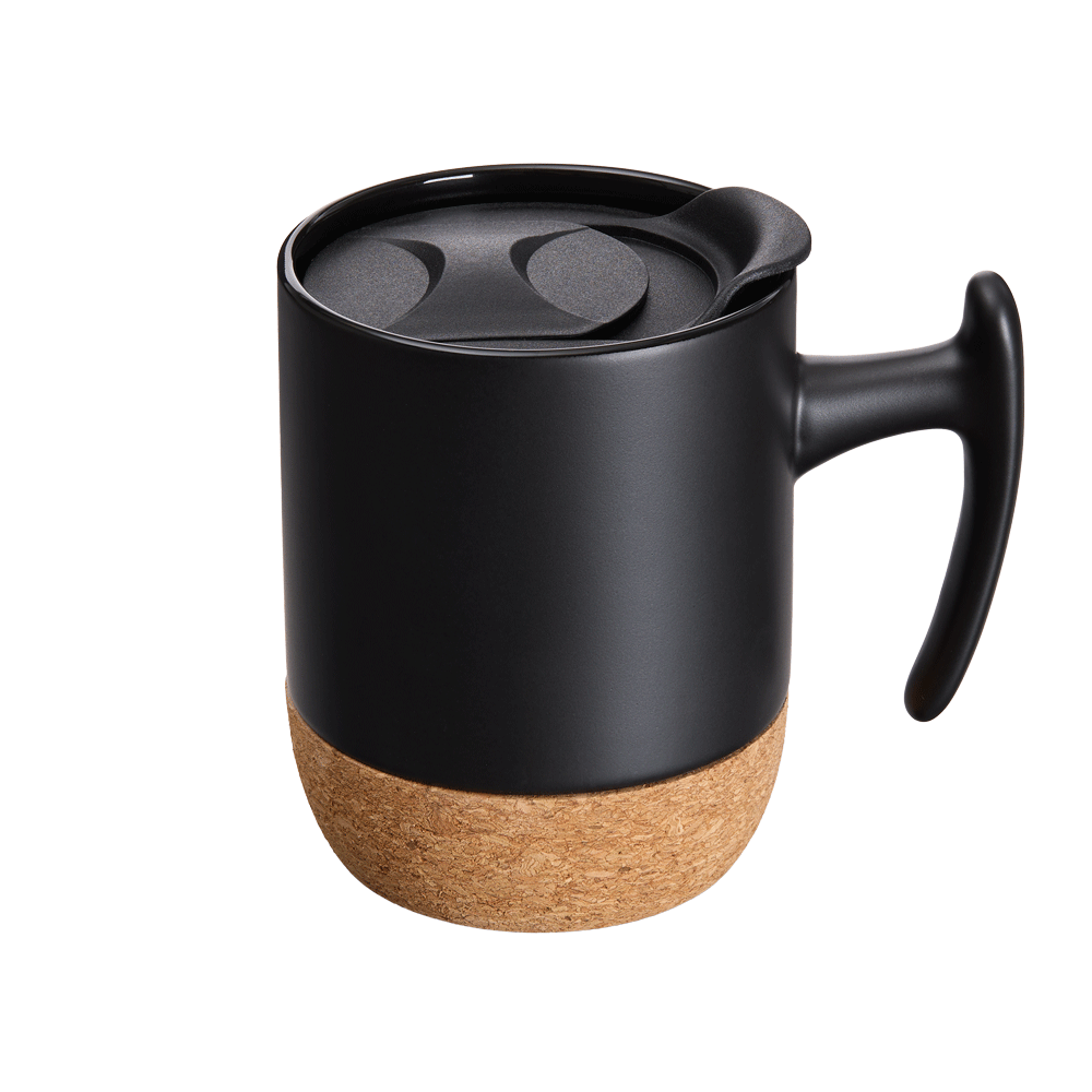 Эта кружка — стильное сочетание функциональности и дизайна. Корпус из керамики сохраняет напиток теплым, нижняя часть из пробки защищает поверхность от нагрева и скольжения, а пластиковая крышка предотвращает проливание. Эргономичная ручка делает использование особенно удобным.