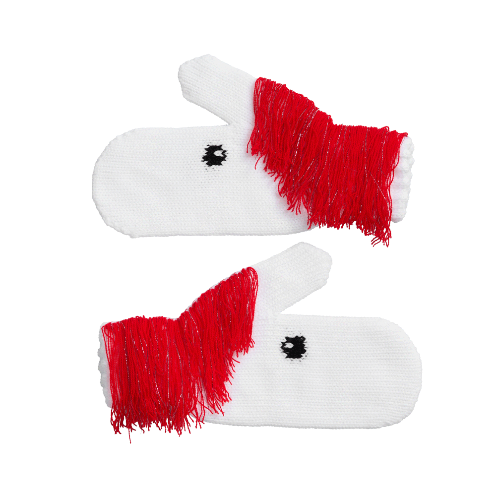 «Игогошки» — веселые варежки прямиком из детства! В такой дружной компании сразу хочется побежать на новогоднюю елку, лихо прокатиться с горки или поиграть в снежки. Грива у этих лошадок игриво колышется яркой бахромой на белоснежном фоне, а озорные глазки так и влюбляют в себя — такой задор сразу передается счастливому обладателю варежек, стоит их только надеть!