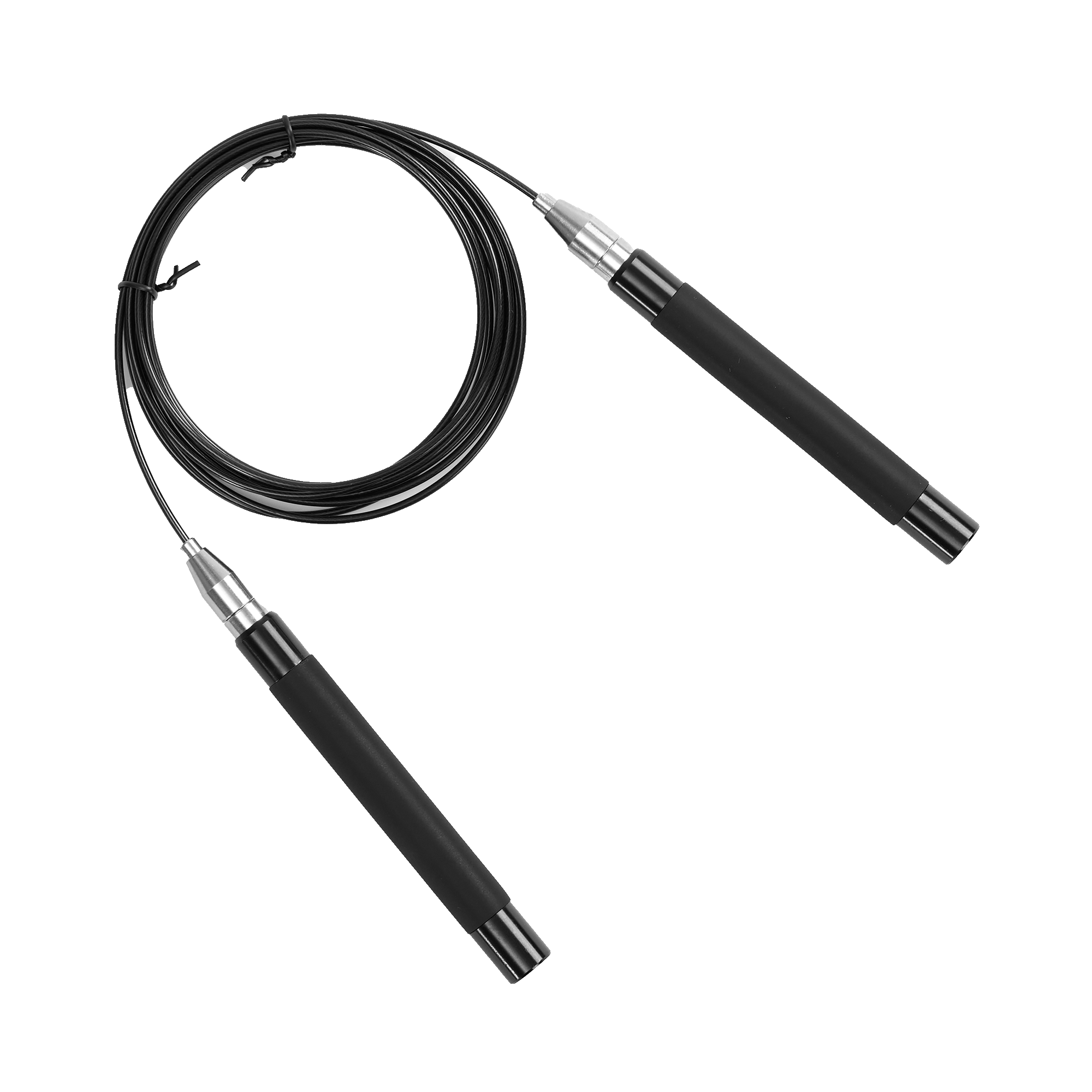 Легкие эргономичные алюминиевые ручки обеспечивают удобный захват, а полиуретановое покрытие предотвращает выскальзывание. Трос с сердцевиной из стального кабеля с гладкой оплеткой из ПВХ не запутывается при скоростном кручении, обеспечивая высокий контроль и управляемость. Система поворотных подшипников, установленная в ручках скакалки, обеспечивает равномерное вращение шнура на 360°.