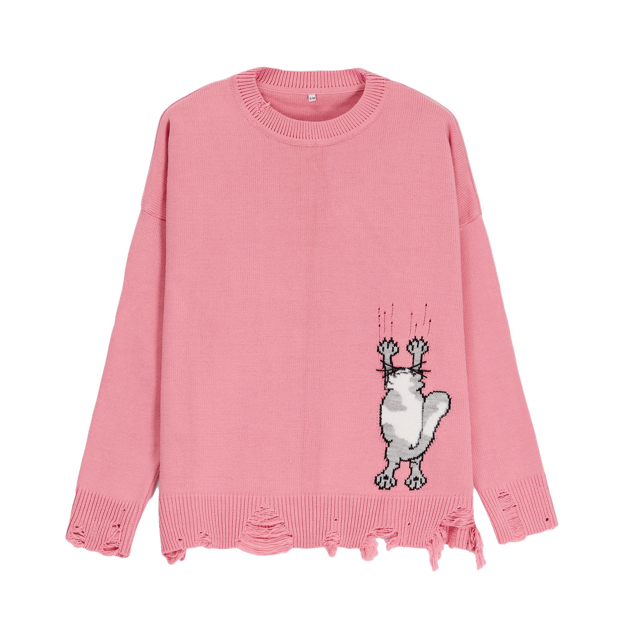 В дизайне мягкого джемпера с круглым вырезом Sharpick гранж-эстетика органично сочетается с милым акцентом — пушистым рисунком в виде озорного котика. Получается веселая вариация на тему того, откуда берется модная рваная одежда, а джемпер моментально создает настроение легкой несерьезности. Рваные края изделия добавляют современную нотку, а резинка на вороте, манжетах и по низу обеспечивает удобную посадку.