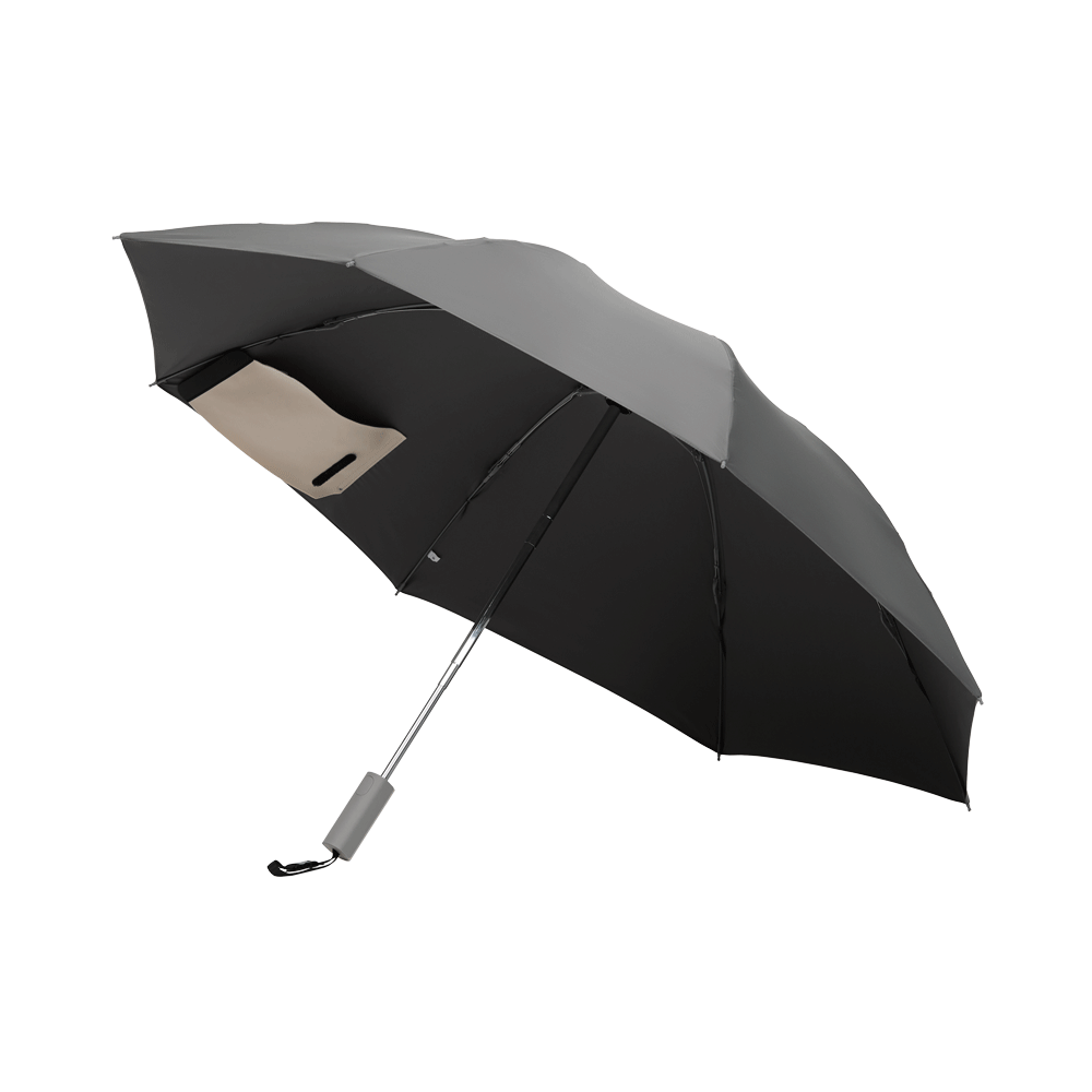 Складываясь после дождя, он прячет мокрую поверхность внутри, а сухая остается снаружи: в закрытом положении зонт не побеспокоит окружающих и не намочит одежду. Благодаря застежке на ремешке зонт удобно подвесить, например, на рюкзак.