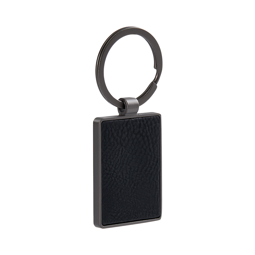 Металлический брелок со вставкой из искусственной кожи для гравировки.