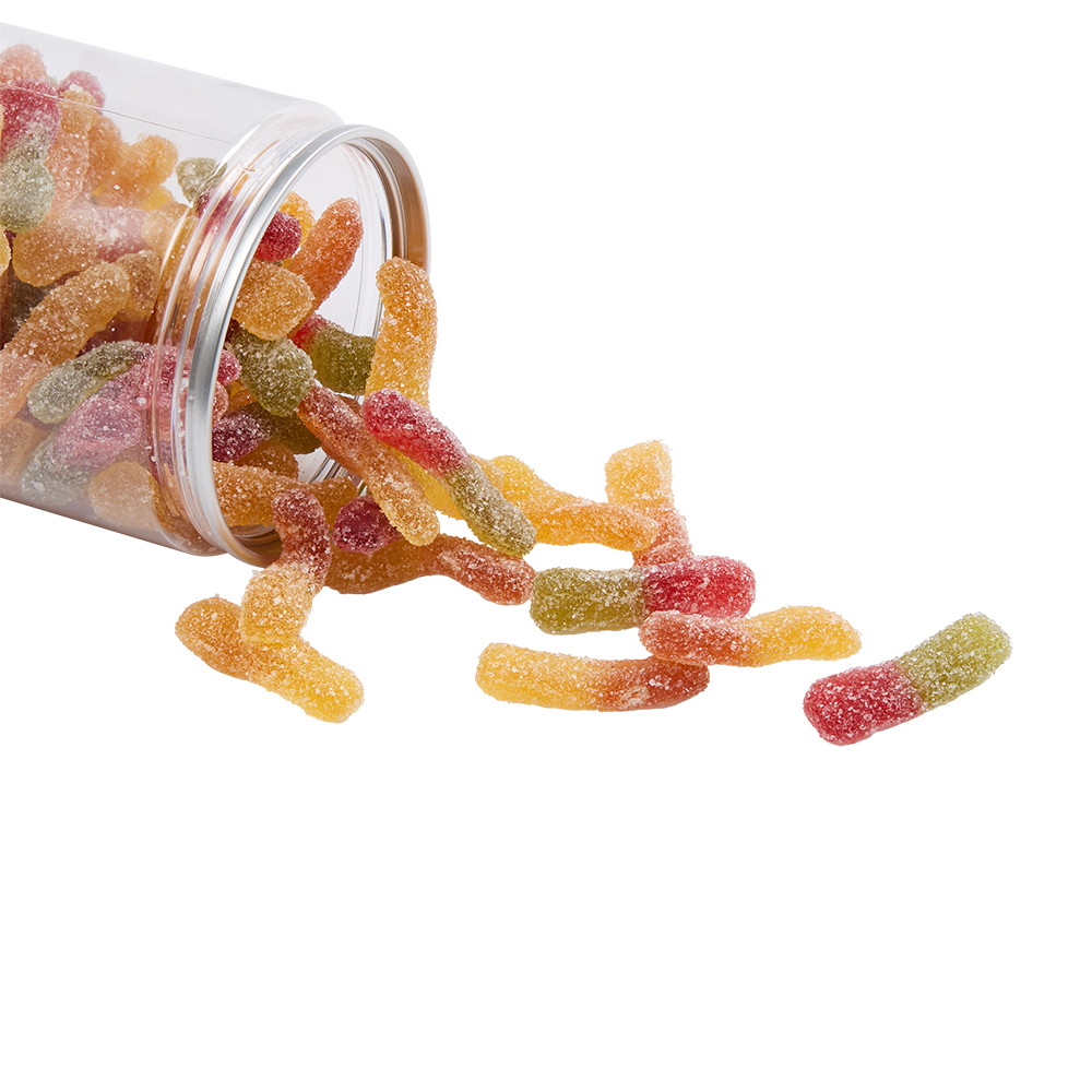 Жевательный мармелад Jelly Sweets — это настоящий взрыв вкуса! Насладитесь тремя яркими сочетаниями: нежный персик с цитрусовой свежестью апельсина, сладкая клубника с кремовыми нотами банана и терпкая черная смородина с кислинкой лимона. Каждая змейка покрыта хрустящей кисло-сладкой посыпкой из измельченного сахара и яблочной кислоты, которая еще больше раскрывает сочную палитру фруктово-ягодных вкусов.