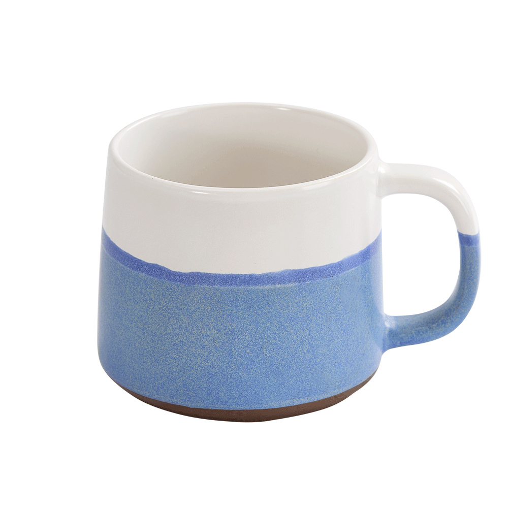 Нижняя половина кружки покрыта реактивной глазурью — особым видом керамического покрытия, компоненты которого вступают в химическую реакцию во время обжига при температуре 1200°C и выше. Из-за непредсказуемого взаимодействия компонентов создаются уникальные переливы, узоры и текстуры, поэтому в партии невозможно найти два абсолютно одинаковых изделия.Емкость 520 мл.