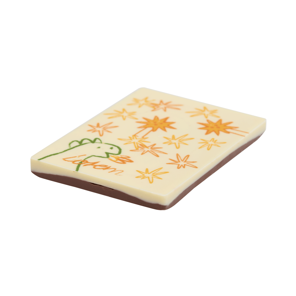 Создайте уникальное поздравление на плитке шоколада с помощью полноцветной печати пищевыми красителями. Для подготовки заказа достаточно загрузить макет, выполненный в конструкторе.