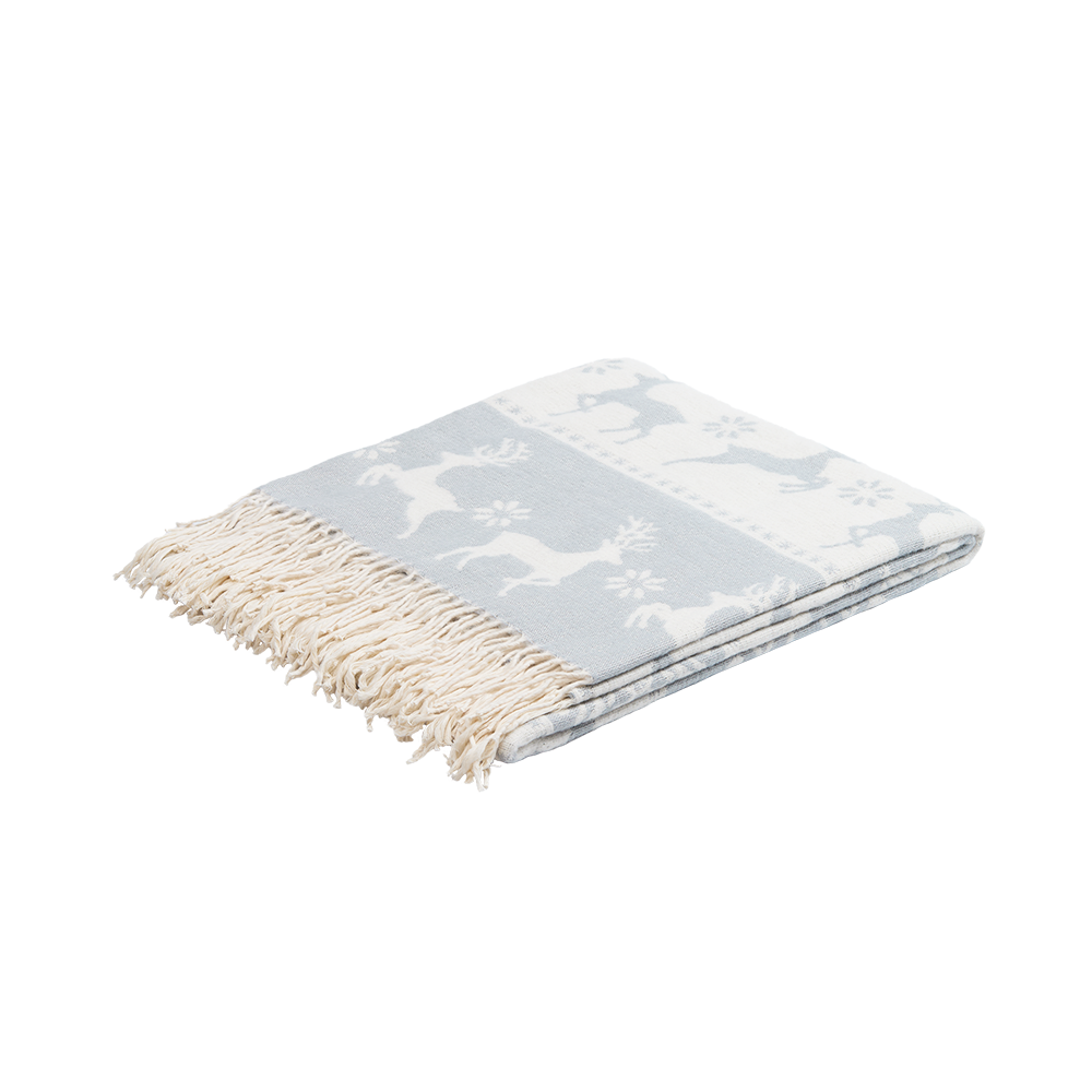 Уникальный жаккардовый рисунок с изображением грациозных оленей и изящных снежинок перенесет в мир северной сказки. Каждая деталь узора тщательно проработана и сразу привлекает внимание, а плед моментально создает неповторимую атмосферу зимнего волшебства.