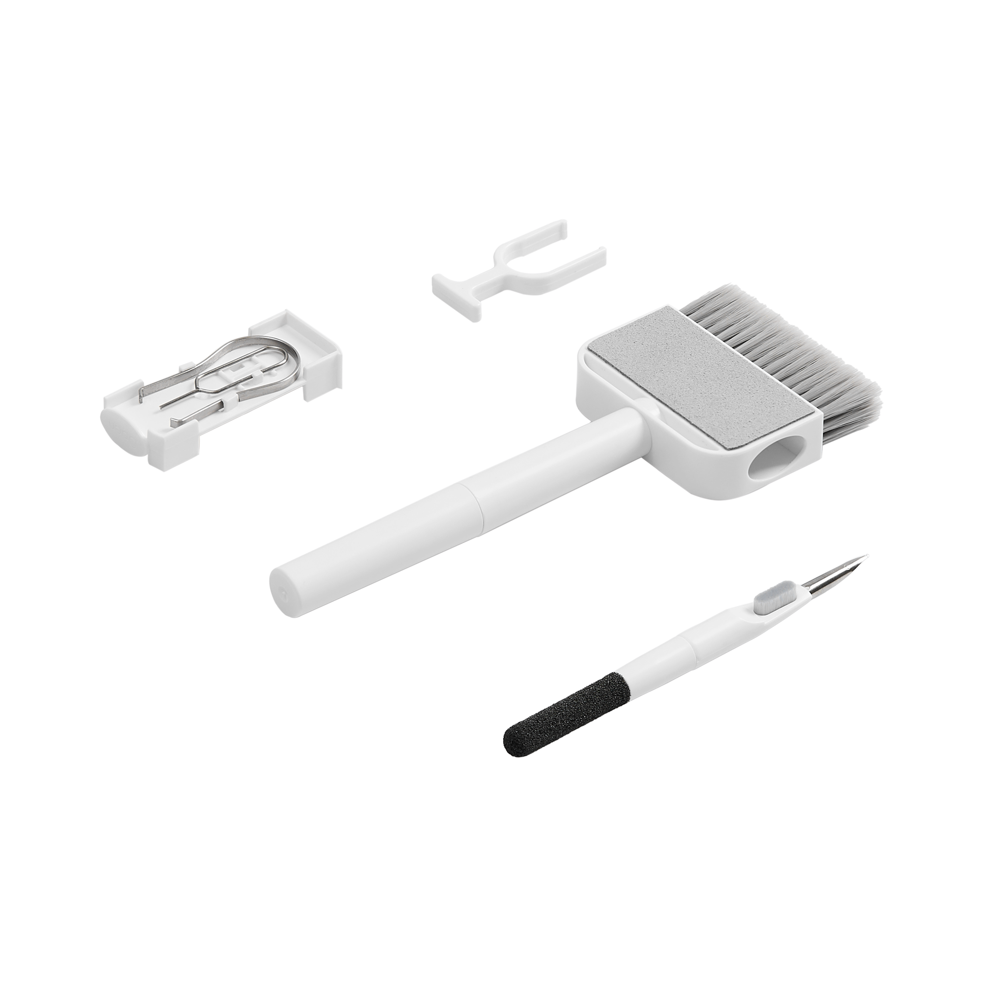 Набор предназначен для всех типов гаджетов. Инструменты компактно складываются внутрь большой щетки.