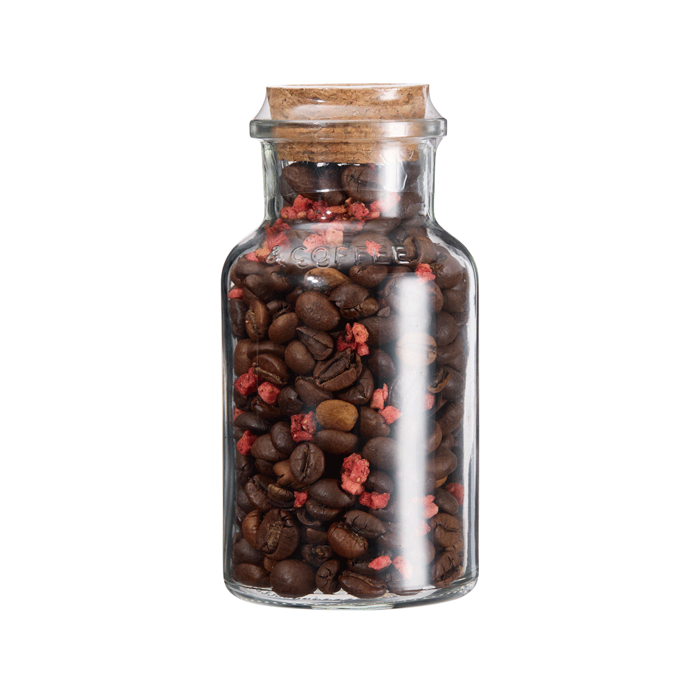 Состав: кофе натуральный жареный в зернах, сублимированная клубника, ароматизатор натуральный «Клубника».