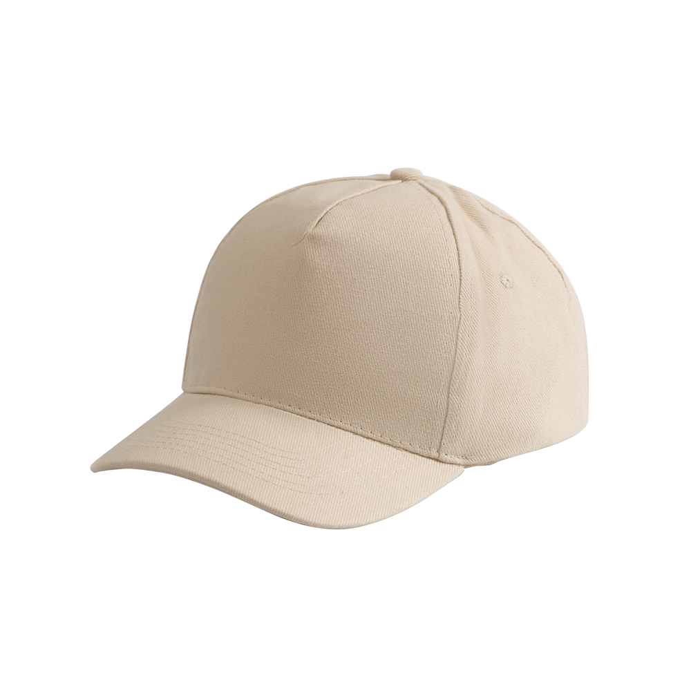 Модель бейсболки с 5-ю клиньями без лобового шва из плотного чесаного хлопка.