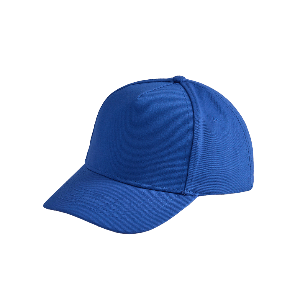 Модель бейсболки с 5-ю клиньями без лобового шва из плотного чесаного хлопка.