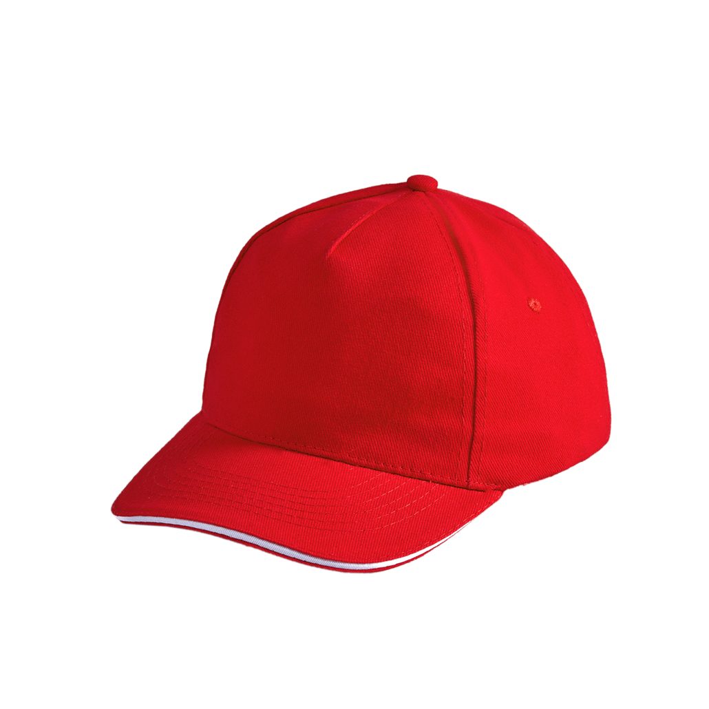 Модель бейсболки с 5-ю клиньями без лобового шва из плотного чесаного хлопка.