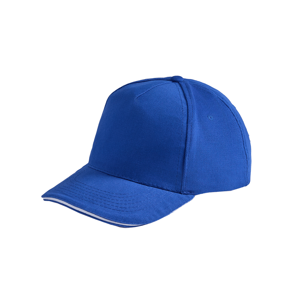 Модель бейсболки с 5-ю клиньями без лобового шва из плотного чесаного хлопка.